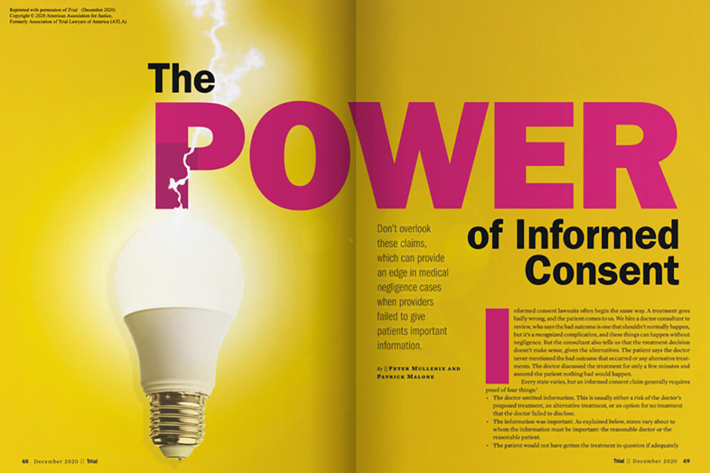 “The Power of Informed Consent,” by Peter Mullenix and Patrick Malone, Trial magazine, December 2020.